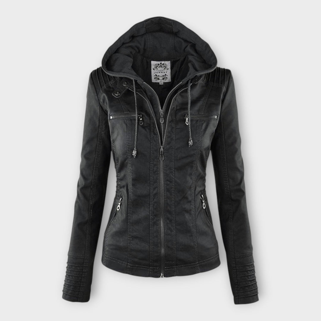 Casaco de Couro Moderno com Capuz e Linha Intemporal