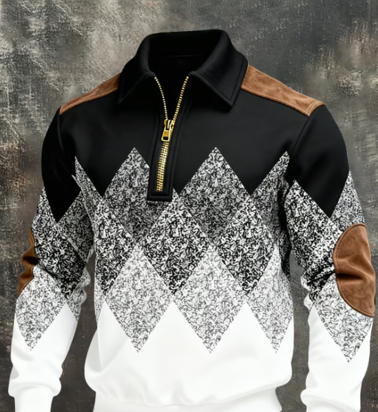 Mateus | Blusa Teddy Com Meio Fecho E Padrão Geométrico Étnico