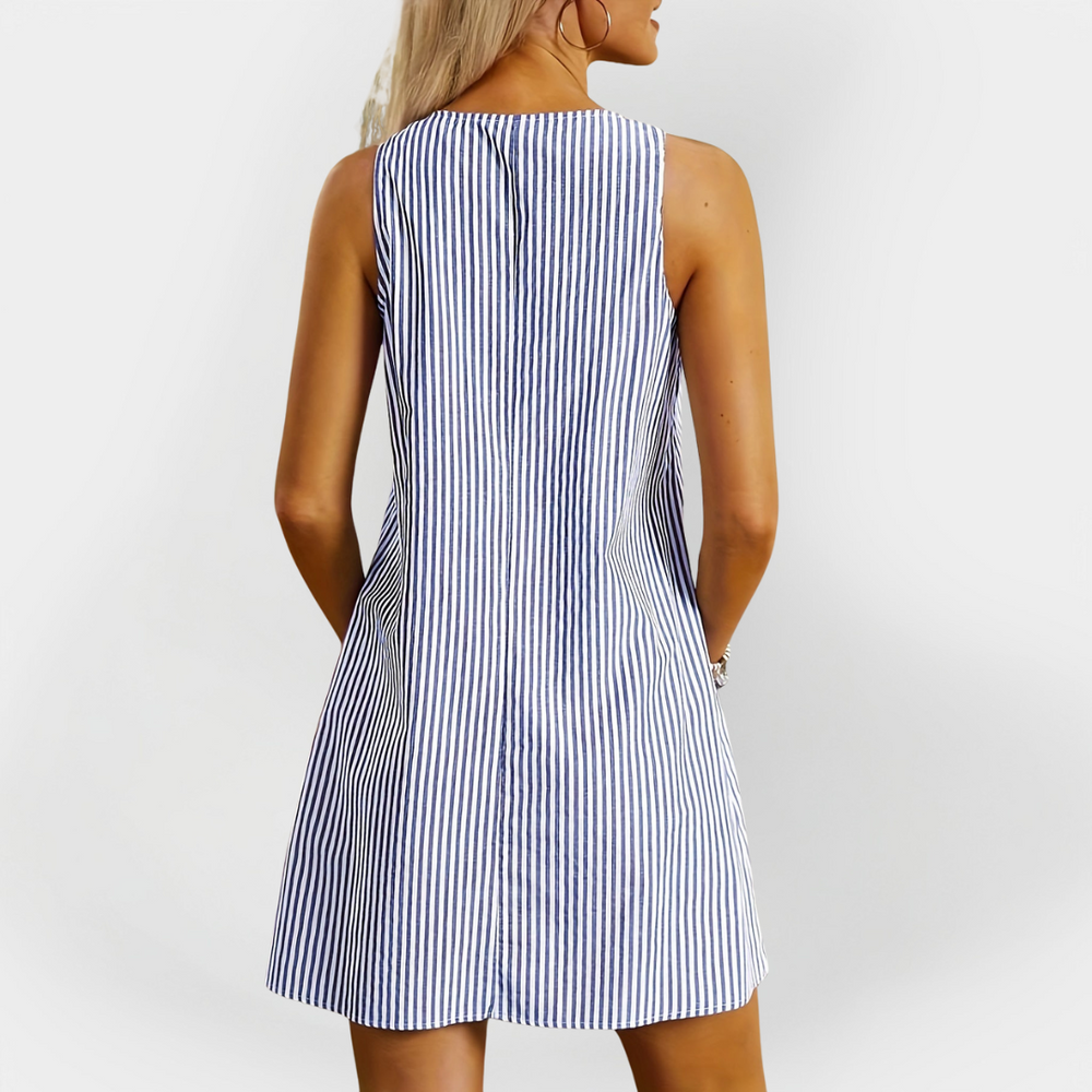 Vestido Listrado Sem Mangas